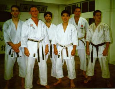 Sommer 1991 Training in London: im Dojo von 5x WM Vic Charles MBE und hier auf dem Foto zu sehen im JKA-Europa Hauptdojo von Enoeda, 8.Dan, mit Ohta, 5.Dan und Nationalkadermitgliedern |