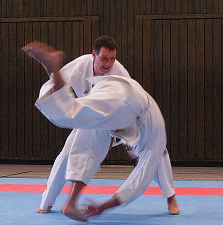 Foto oben: ein brillianter Wurf bei seiner 1.DAN-Prüfung im November 2003