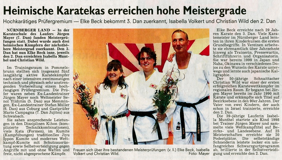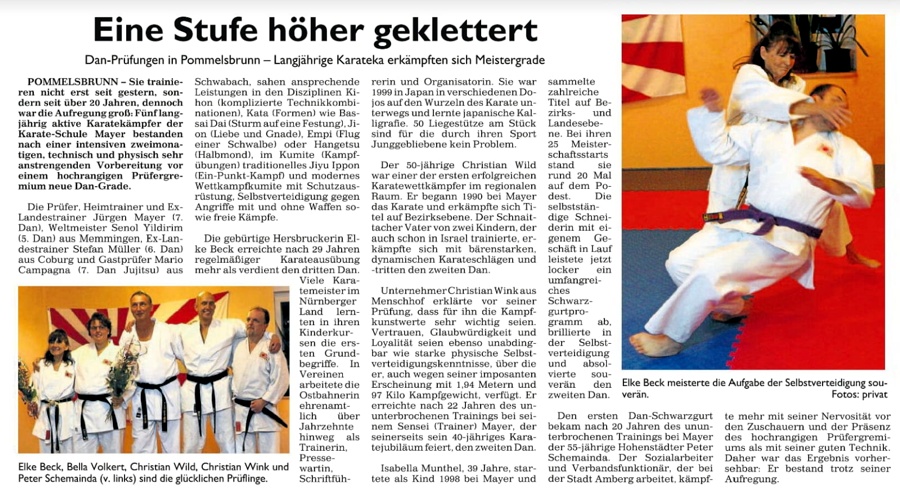 Foto oben: die lokale Presse berichtete über Karate Urgestein Christan anläßlich der DAN-Prüfung in Pommelsbrunn