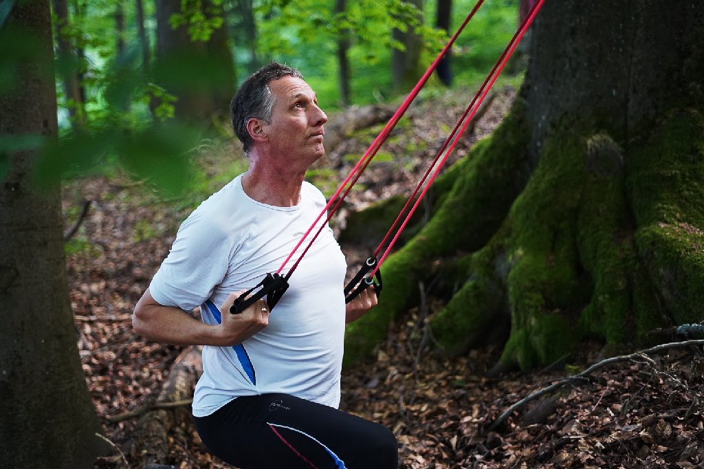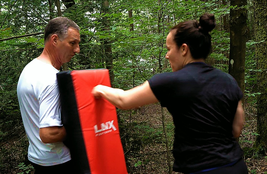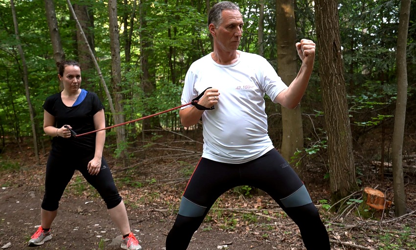 Foto oben: Christan beim Schnellkrafttraining mit Karate Partnerin Sonja im Sommer 2020