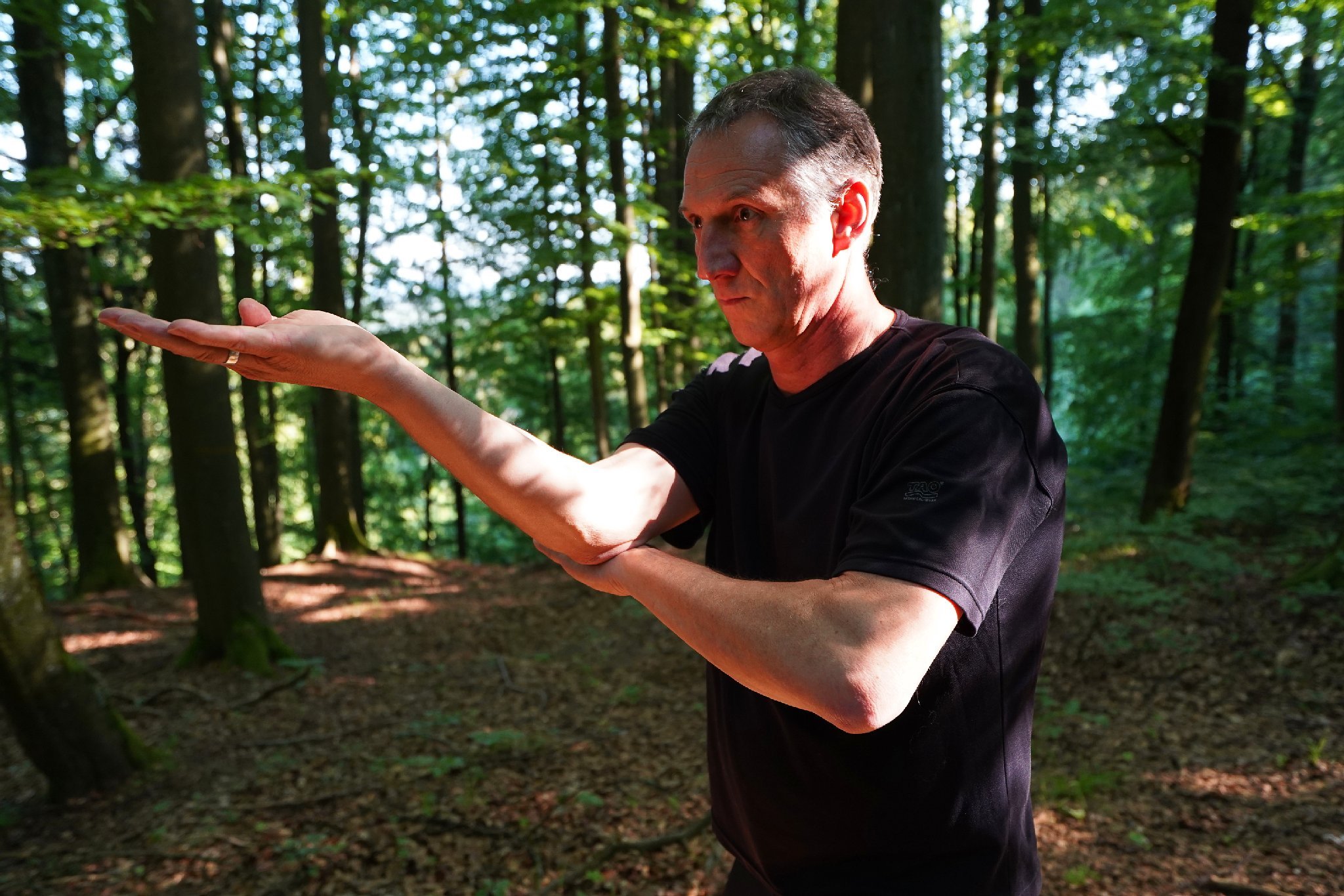Foto oben: Christan 2.DAN beim Outdoor Training im Juni 2020 mit der Kata SOCHIN