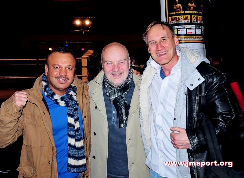 Foto oben: mit dem Nürnberger Boxtrainer Metin O. (li.) und Mäzen Dr. Heiner (mi.)